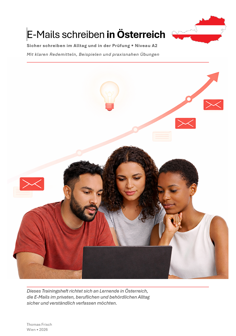 Das Lehrwerk „E-Mails schreiben in Österreich (A2)“ kann als digitale Version (PDF) oder in gedruckter Form bezogen werden.